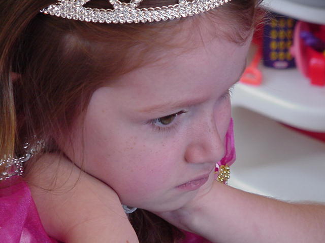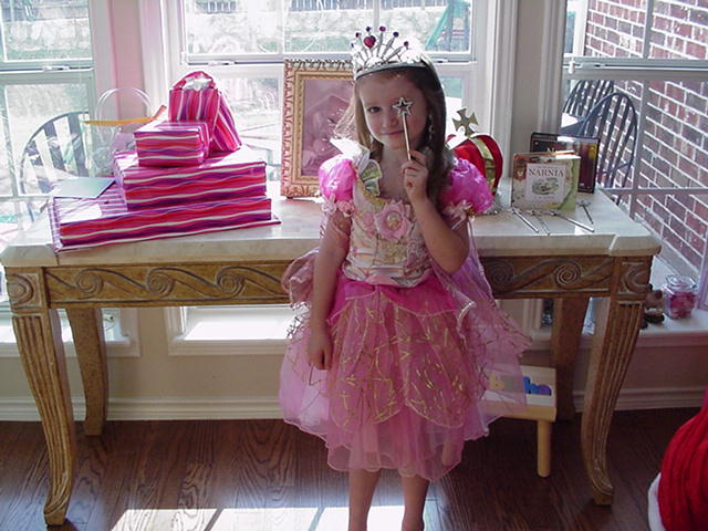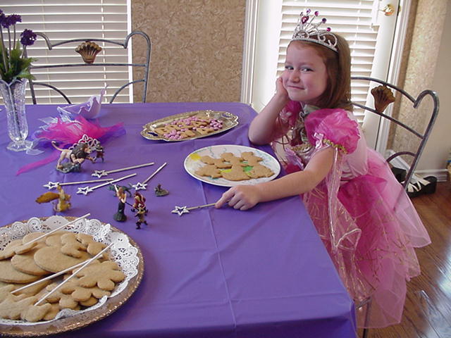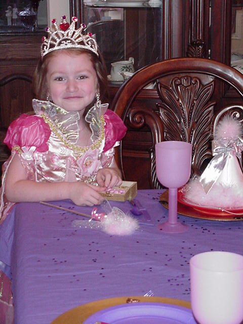 Pretty "Queen Lucy" setting up her castle for a Birthday Ball!