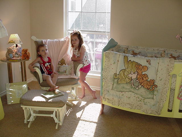 Brianna and Bryce having fun in their baby sister's new nursery! |