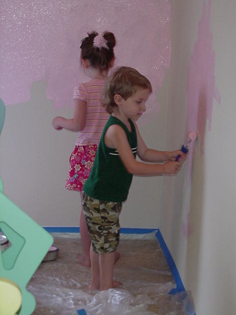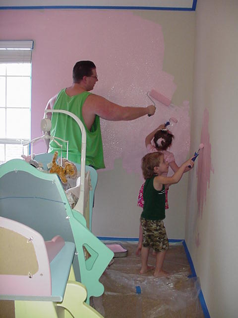 Bryce and Brianna help Daddy paint baby sister's nursery. |